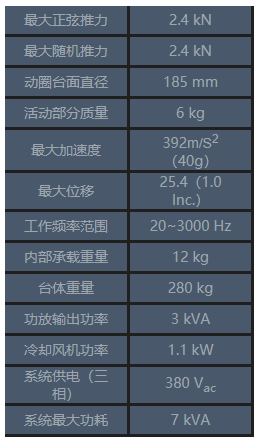 適合重量在5kg以下的機電產品試件,正弦定頻振動試驗、正弦掃頻振動試驗、寬帶隨機振動試驗。主要技術參數