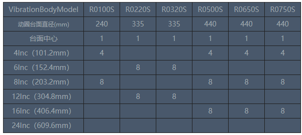 圓形擴展台具有良好的頻響特性,其台麵螺釘分布符合上表標注尺寸。