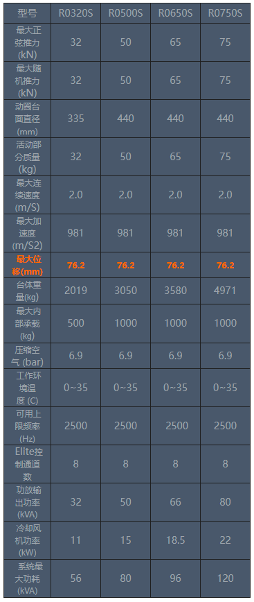 76 mm位移,32-75kN推力將標準設備的51mm位移提高到76mm,可滿足運輸環境振動試驗條件。如GJB150(A)zhonglunshizhancheyunshushiyan。tuijianyanzhichezaihuozaijianzaizhuangbeidejungongdanweixuanzegaixiliechanpinzhuangbeishiyanshi。gaidaweiyixilieshebeiketongshimanzubiaozhunshiyanxitongkeyiwanchengdegegexingyebiaozhunshiyanguifan。